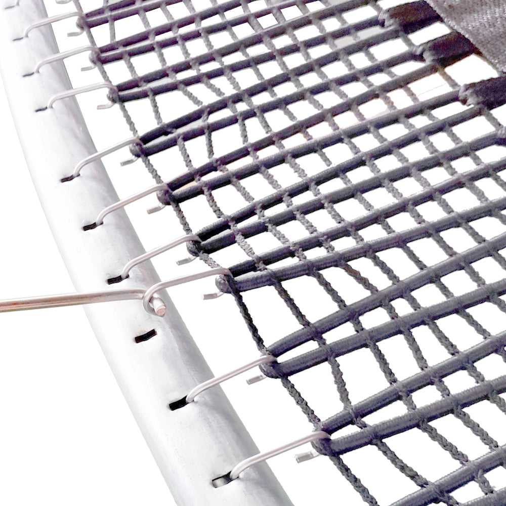 The LeJump Lightning series features a modern fiberglass safety pole structure that promotes build quality and prevents accidents. The curved poles add additional distance between activity on the jumping mat and the sturdy frame of the trampoline.